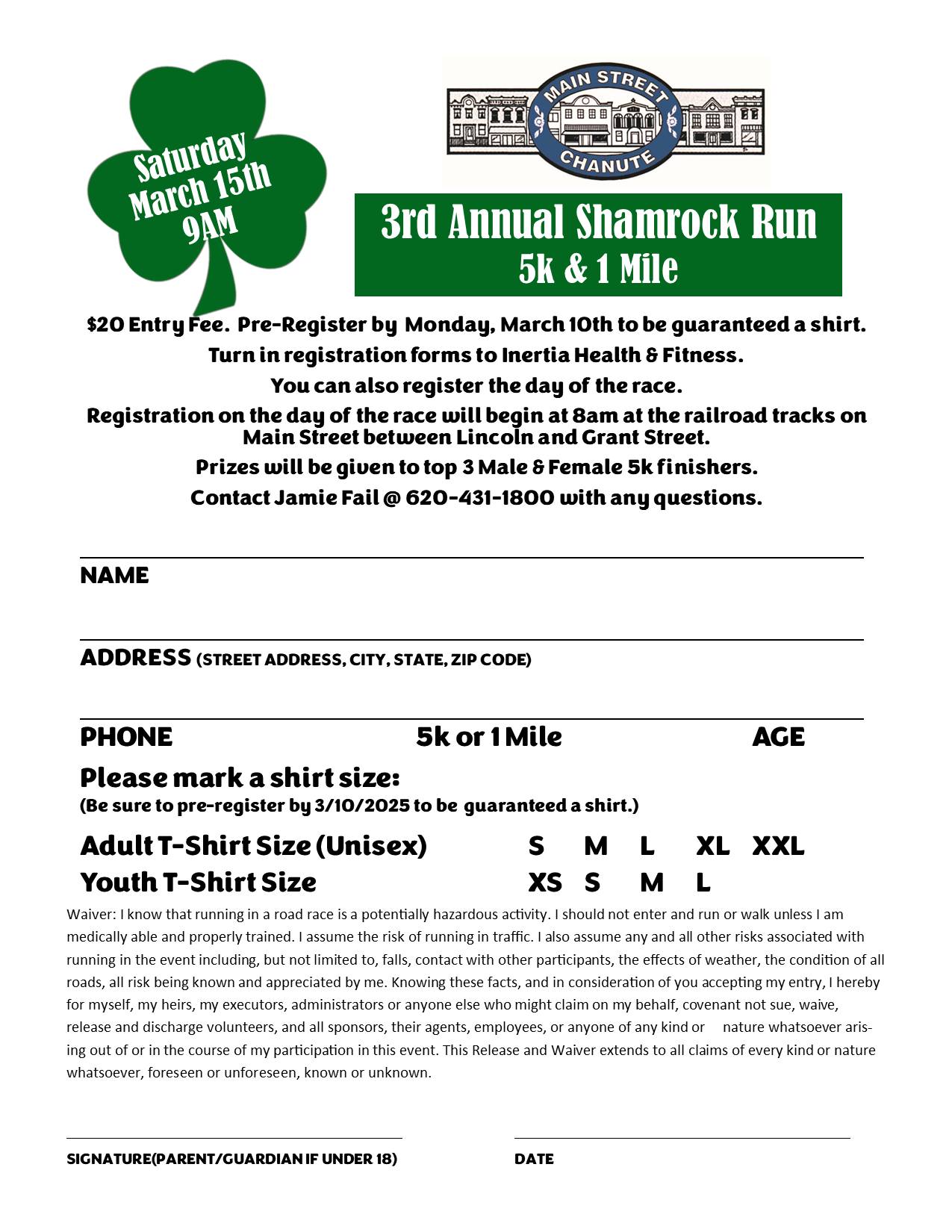 3rd Annual Shamrock Run 5K & 1 Mile- Register at Inertia Health & Fitness