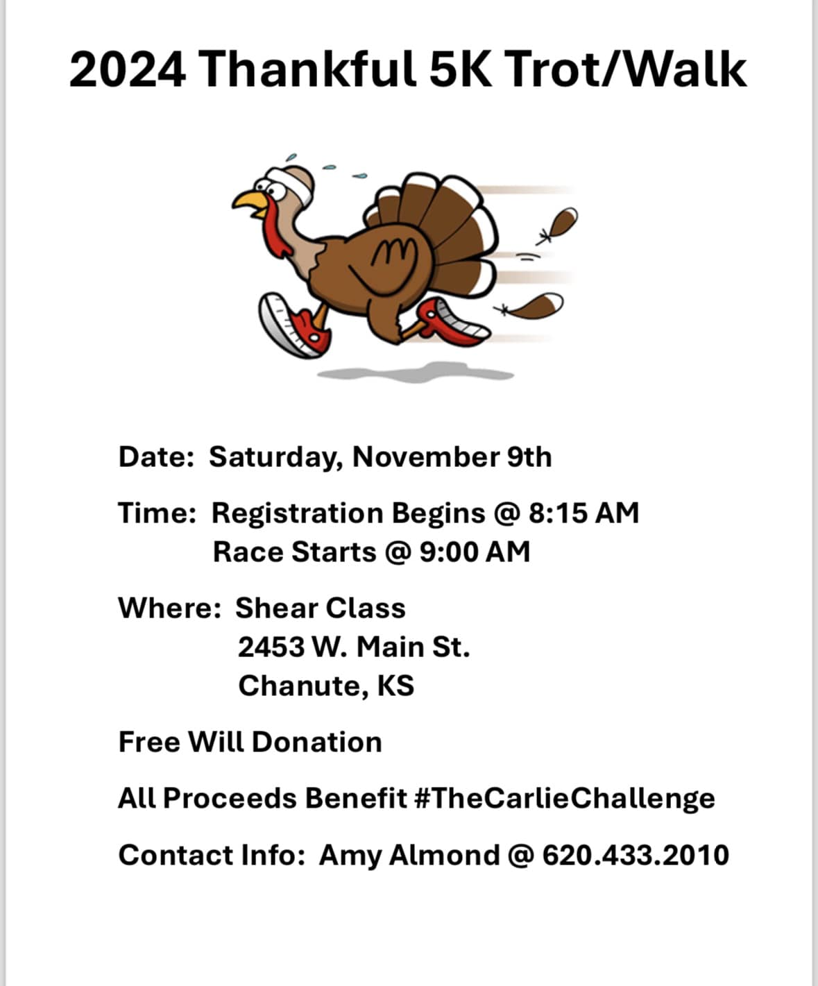5K 2024 Thankful Trot/Walk- All proceeds benefit #thecarliechallenge