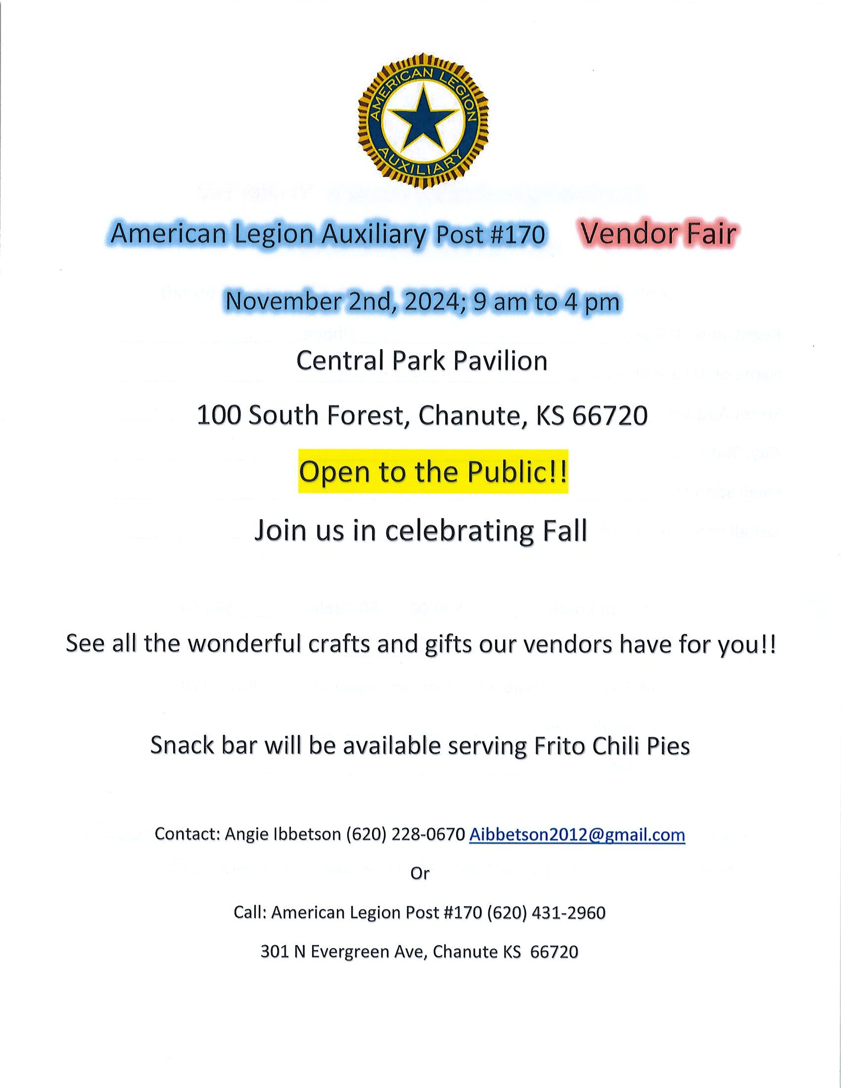 American Legion Auxiliary Post #170 Vendor Fair – Open to the public