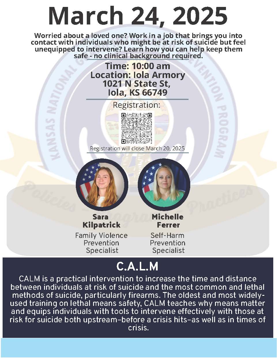 C.A.L.M – training- Learn how you can help keep others safe- no clinical background required