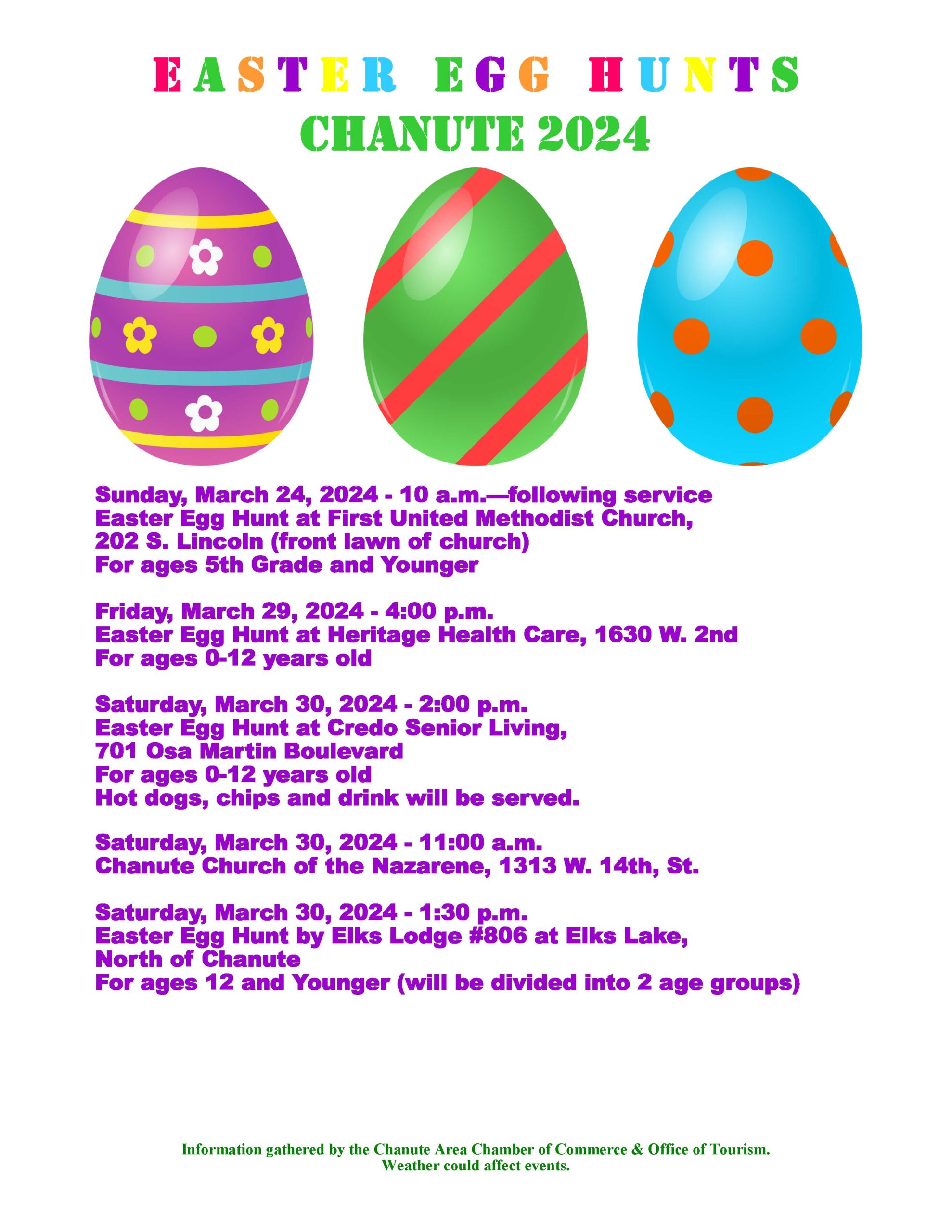 Chanute Easter Egg Hunts 3.24-3.30.24- Click on event for more details