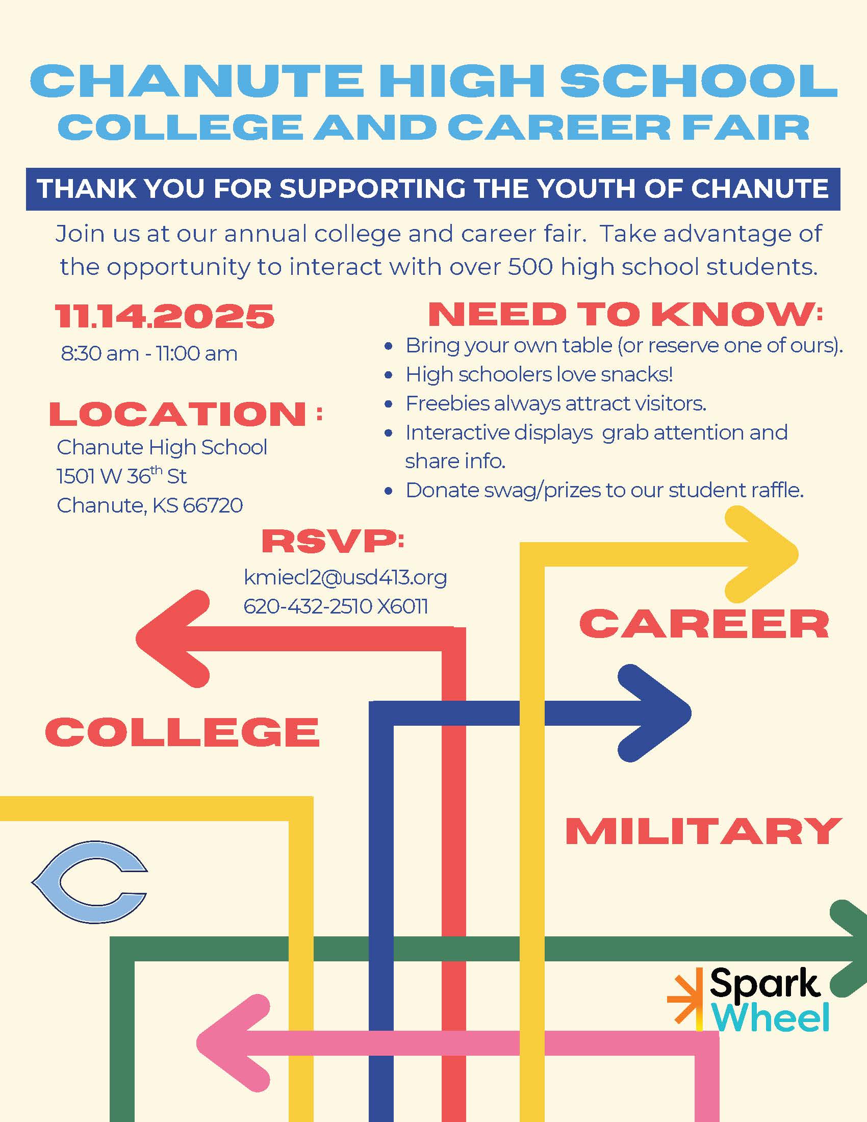 Join the Chanute High School for the annual College and Career Fair. Take advantage of the opportunity to interact with over 500 high school students.