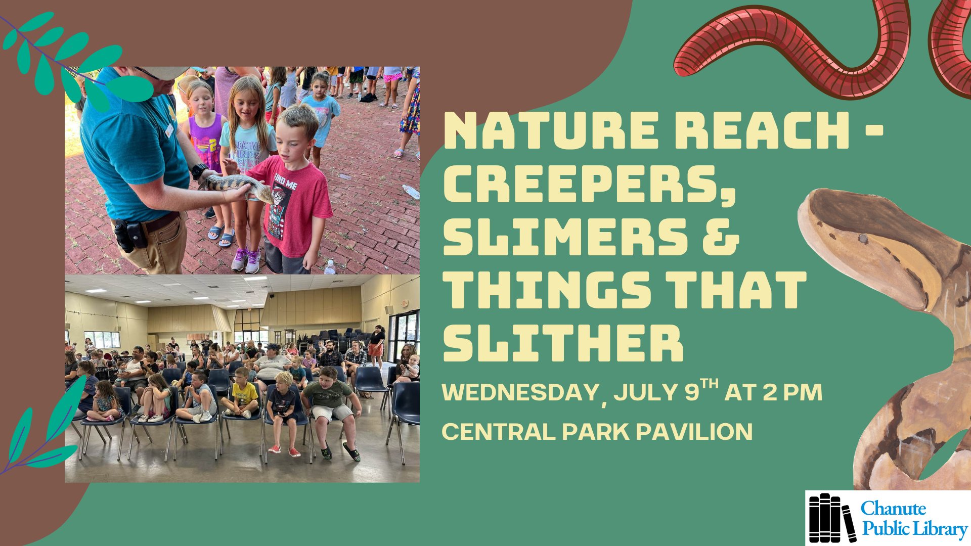 Chanute Public Libr. will host: Learn all about creepy crawlies and things that slither and slime! Located at Central Park Pavilion.