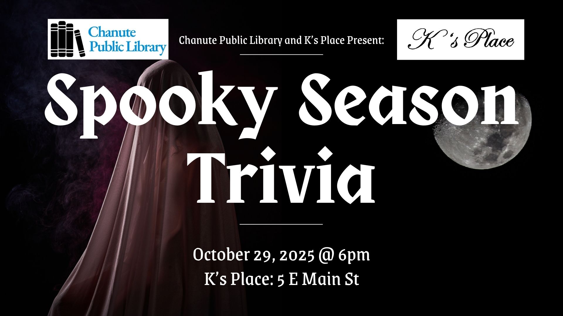 Chanute Public Library is joining hands with K’s Place to bring you Spooky Season Trivia. Wed. 29th- 6 p.m.