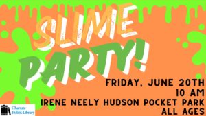 Chanute Public Library will host: Located in the Irene Neely Hudson Pocket Park, across from the Depot behind the Chamber of Commerce and Art Gallery. Make slime with us!
