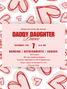 Registration for Daddy Daughter night now open! Deadline is Monday Feb. 2nd. Hope to see all you dads there!