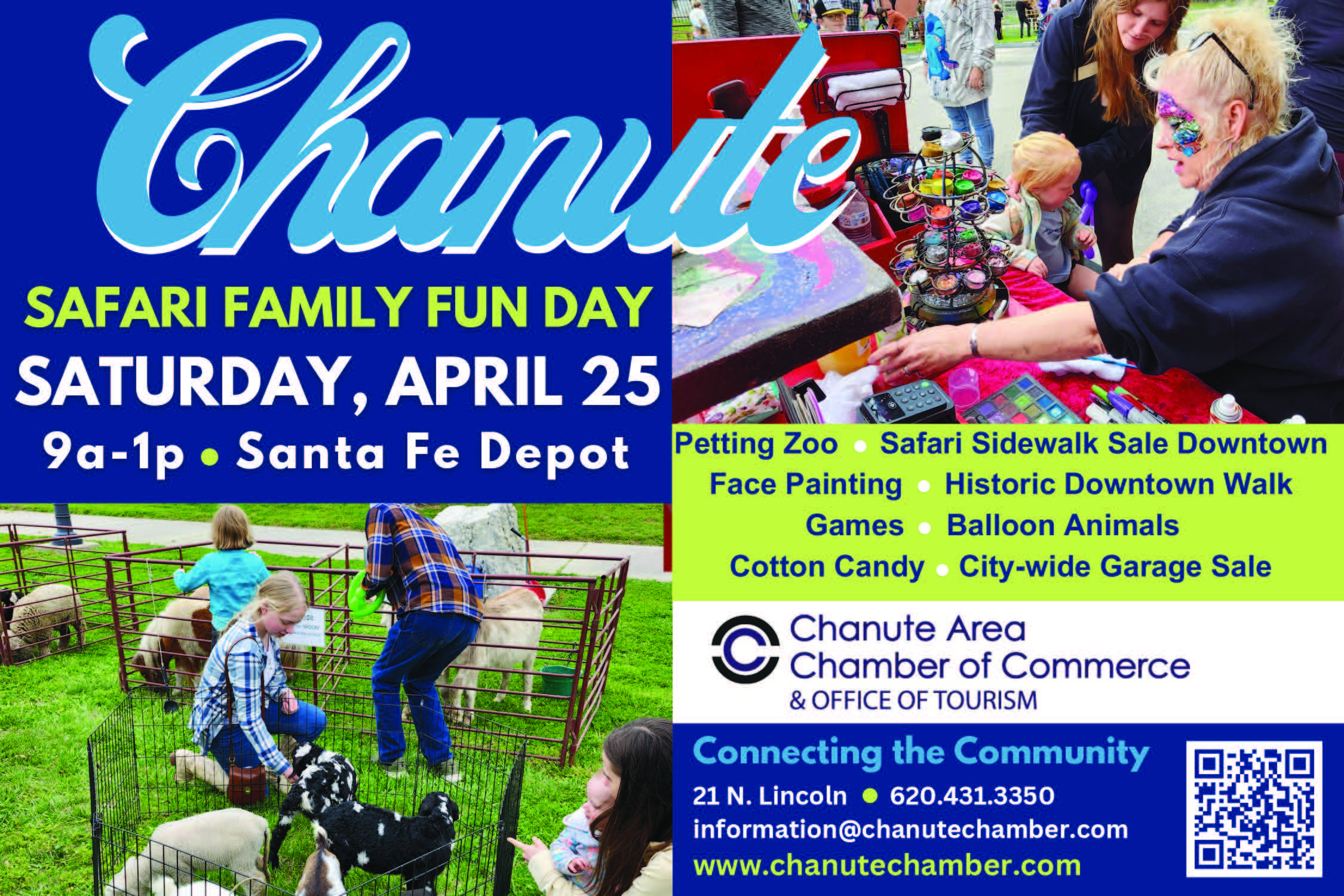 Chanute Safari Family Fun Day – by the Santa Fe Depot. Hosted by Chanute Area Chamber of Commerce