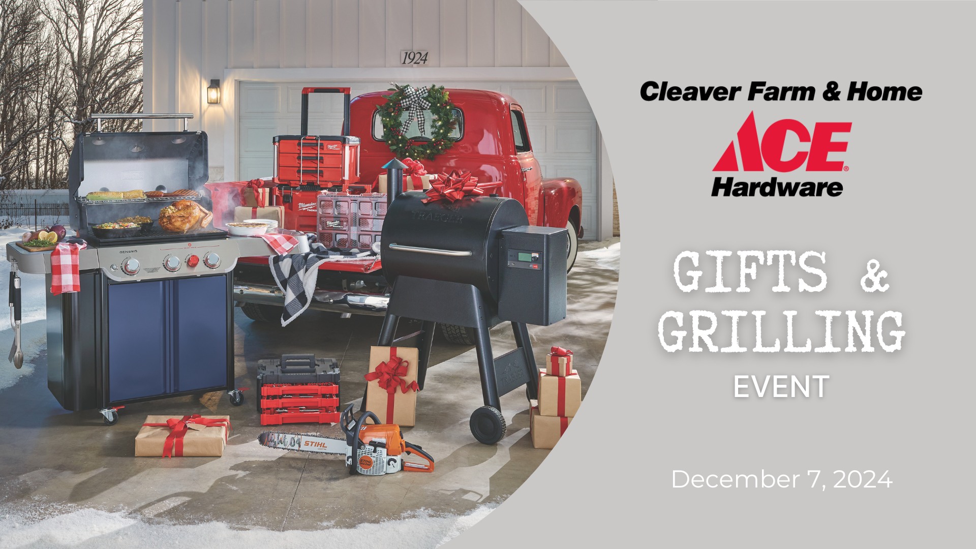Gifts & Grilling Event Date: December 7th, 2024 Time: All Day Location: Cleaver Farm & Home