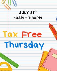 Join us this Thursday for a special TAX- FREE shopping day at Big & Little Consignment! Whether youβre a teacher, a student, or just love a great deal – this is your chance to snag stylish, budget friendly pieces for the season.Β