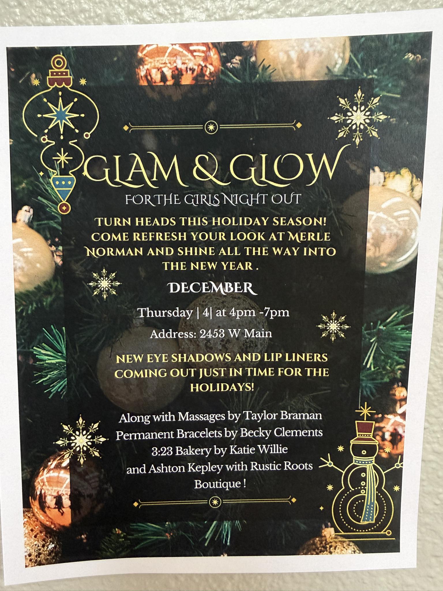 Girls Night Out – Glam & Glow at Merle Norman Cosmetics at Shear Class – Thur. Dec 4; 4-7 p.m.