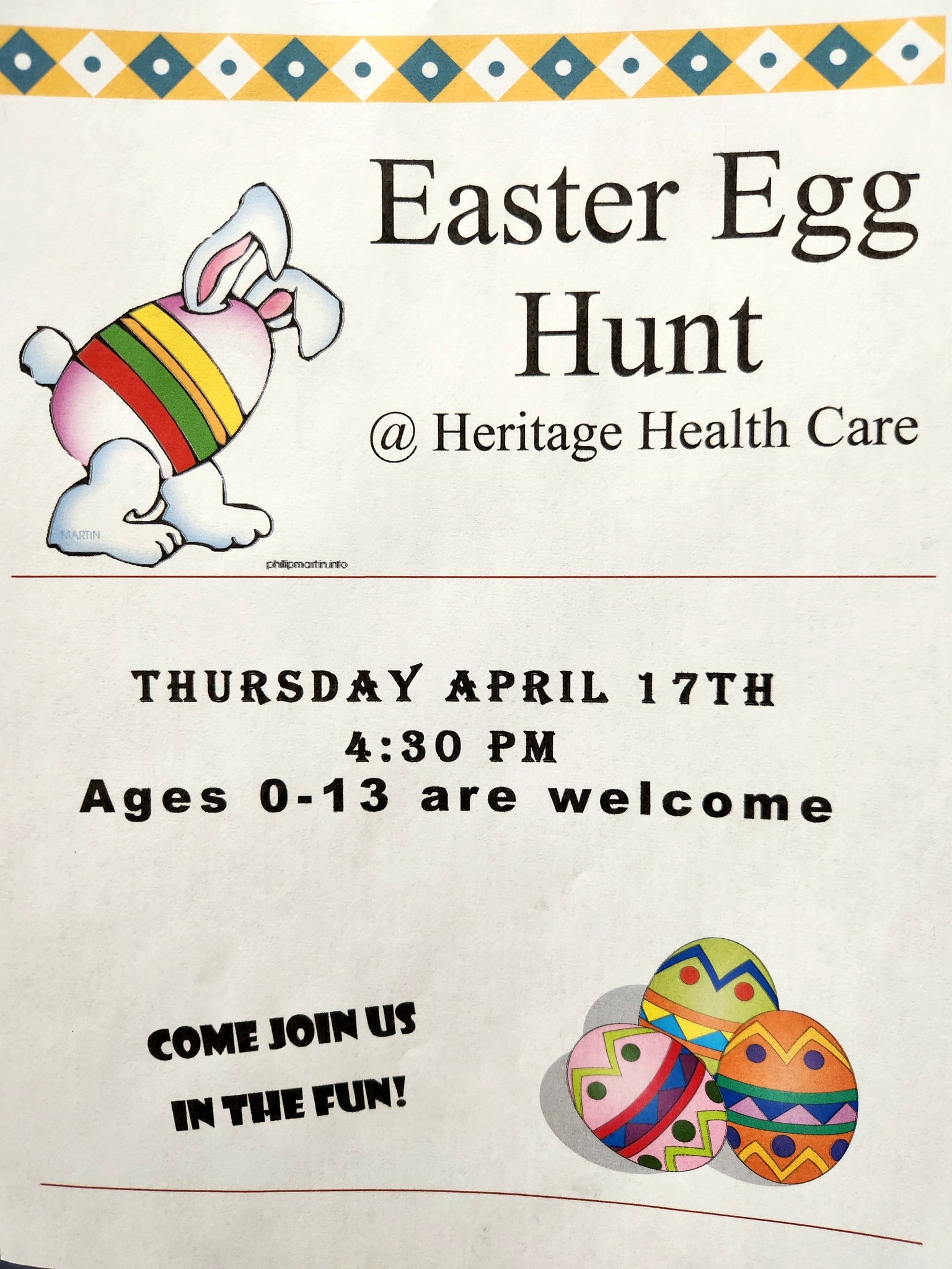 Heritage Health Care Easter Egg Hunt- Thur. April 17; Ages 0-13