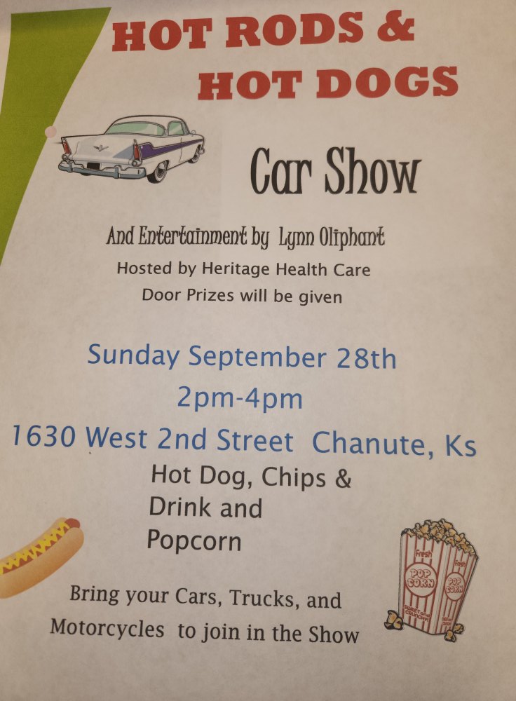 Hot Rods & Hot Dogs hosted by Americare Heritage Health Care 1630 West 2nd St, Chanute, KS