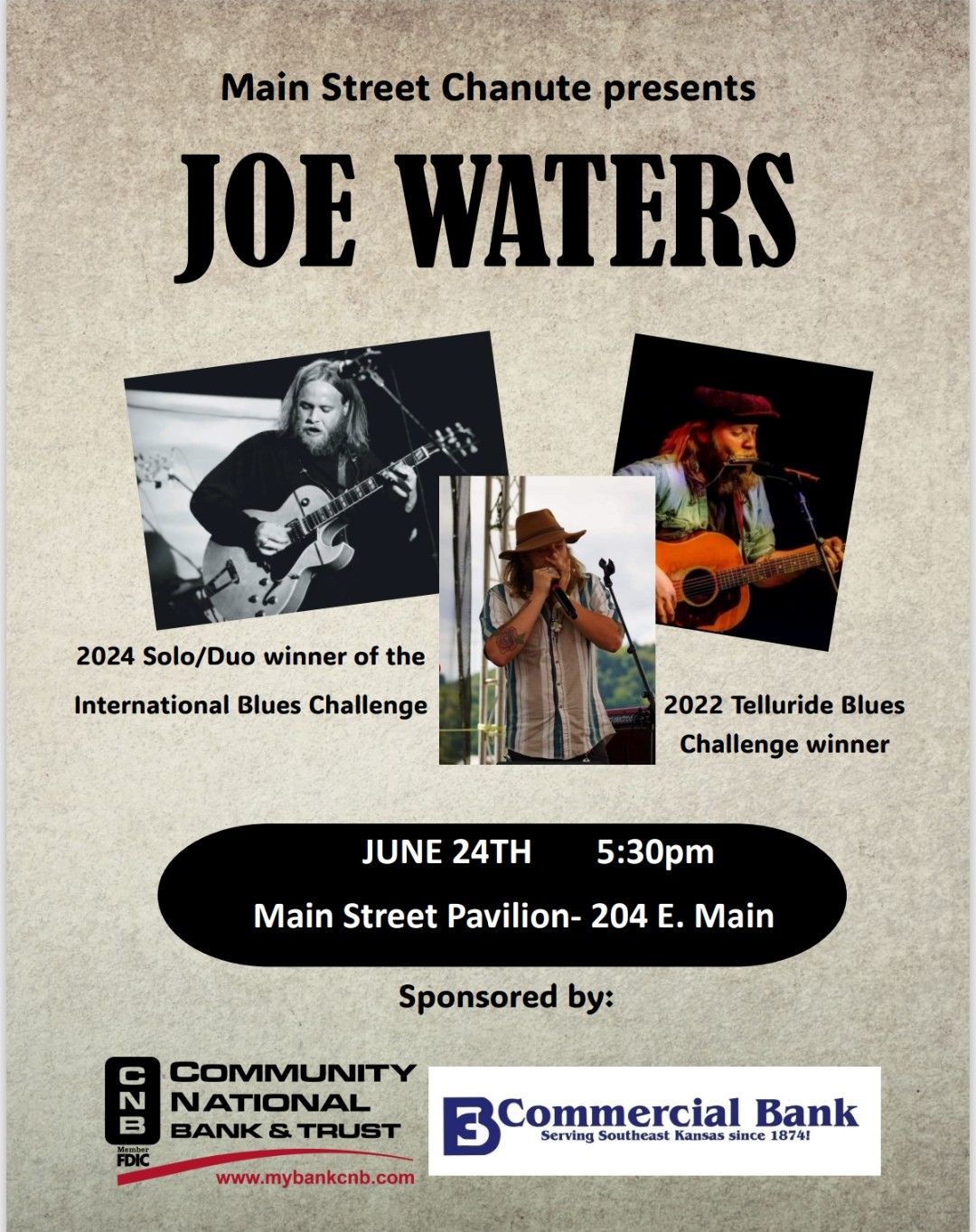 Main Street has another treat for you Chanute!! Joe Waters ๐ฅ๐ฅ๐ถ๐ will be playing for us, YESโผ๏ธ Right here in downtown Chanute! We’re in for a treat, so don’t miss this one! Joe will be playing at the Farmers market Main Street Pavilion,