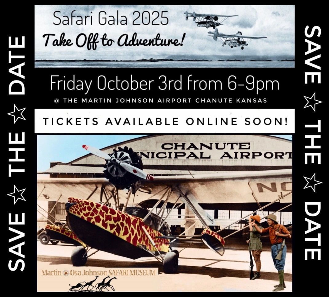 SAVE-the-DATE: On Friday Oct 3rd we’re hosting our 2025 Safari Gala & Adventure Auction at the Martin Johnson Airport in Chanute! We invite you to come dressed for Adventure: as in clothes from fabulous travels already taken, future treks on your bucket list or as the Adventurers you most admire.