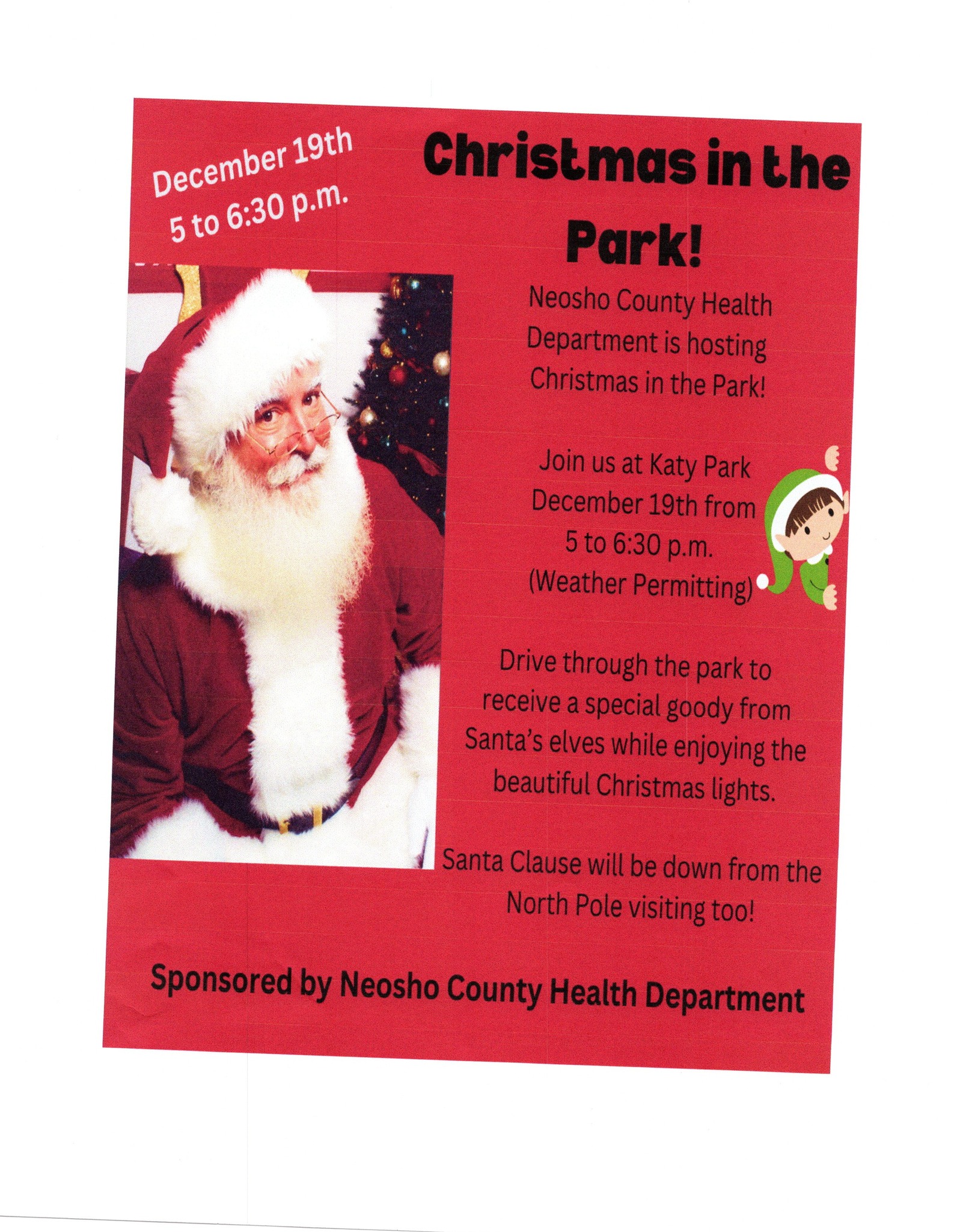Neosho County Health Department is hosting Christmas in the Park – Katy Park 5-6:30 p.m.