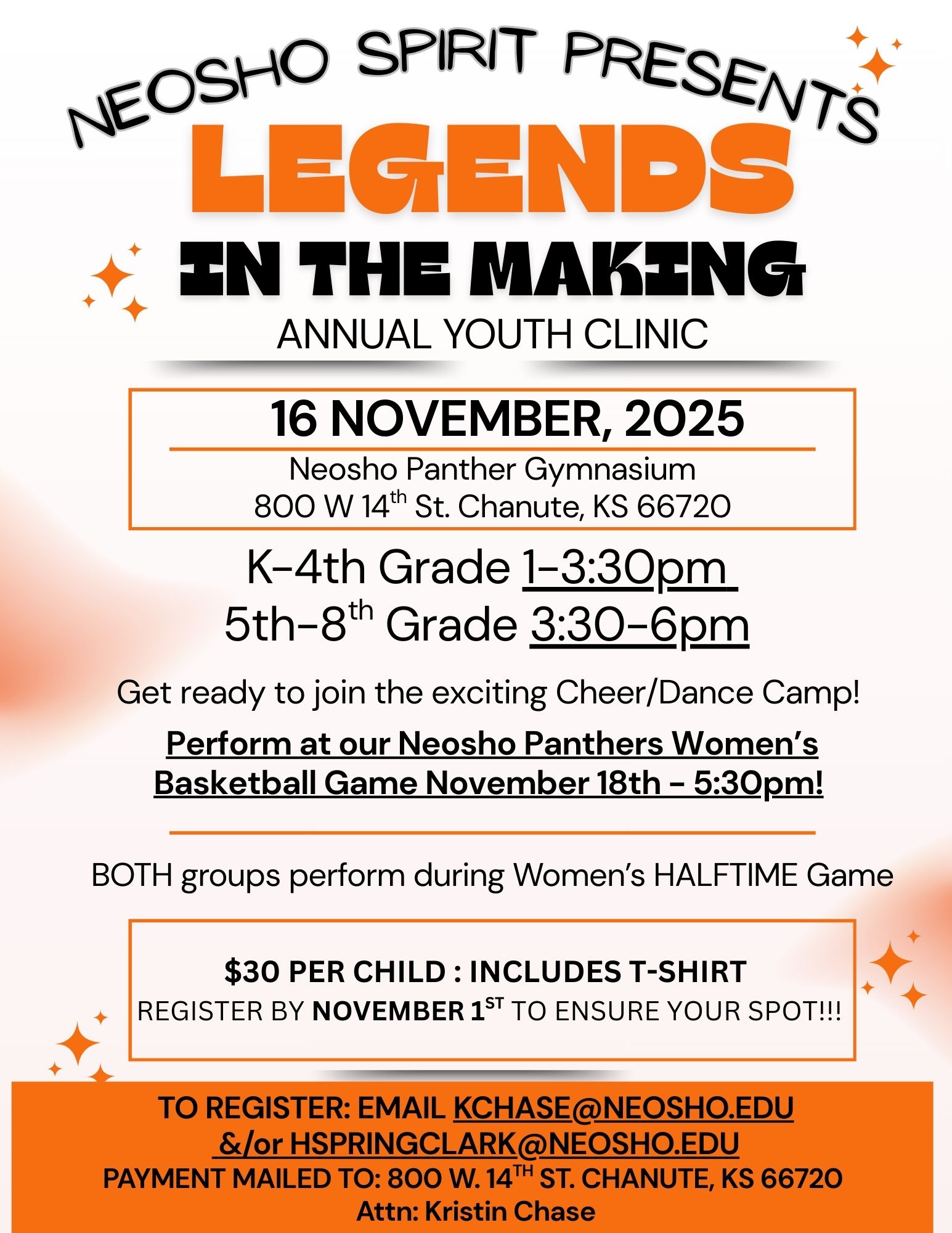 Neosho Spirit Presents Legends in the Making Annual Youth Clinic Nov. 16: Register by Nov. 1st to ensure your spot!