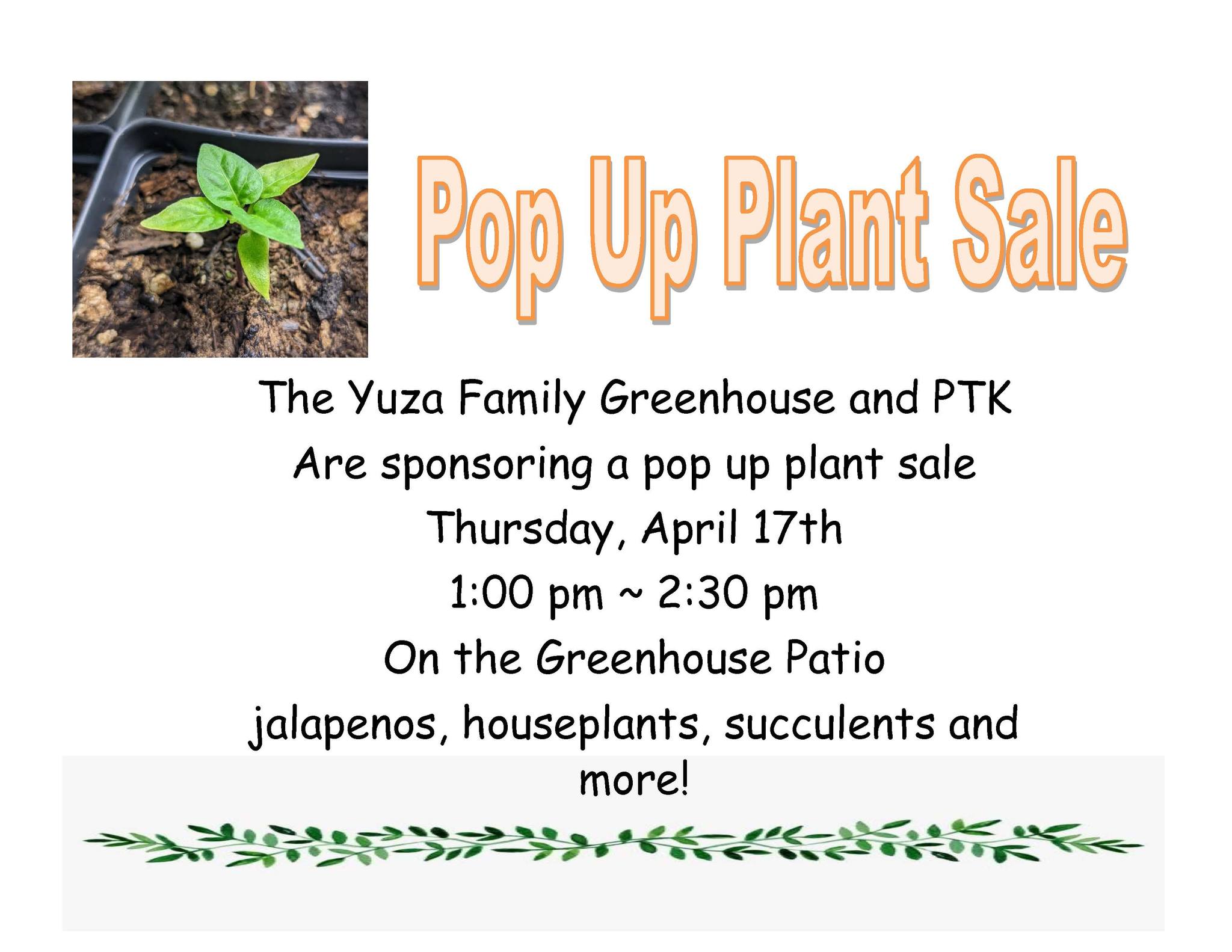 Pop Up Plant Sale – Neosho County Community College Campus- The Yuza Family Greenhouse and PTK, Thur. Apr. 17th