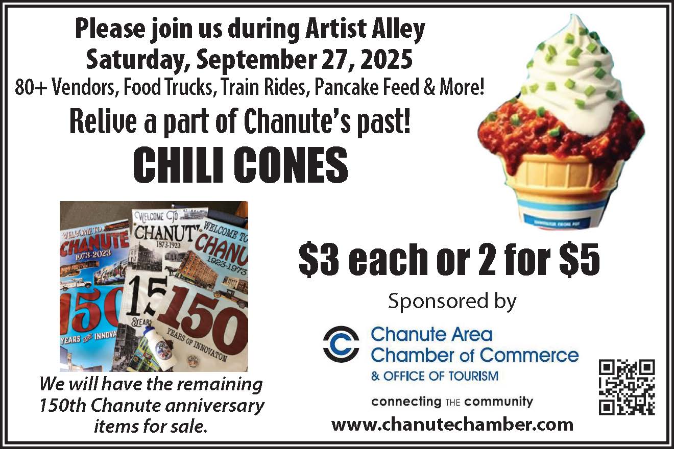 Relive a Part of Chanute’s Past! Chili Cones- Saturday Sept. 27 (during Artist Alley) Noon – 2pm.; 21 N. Lincoln