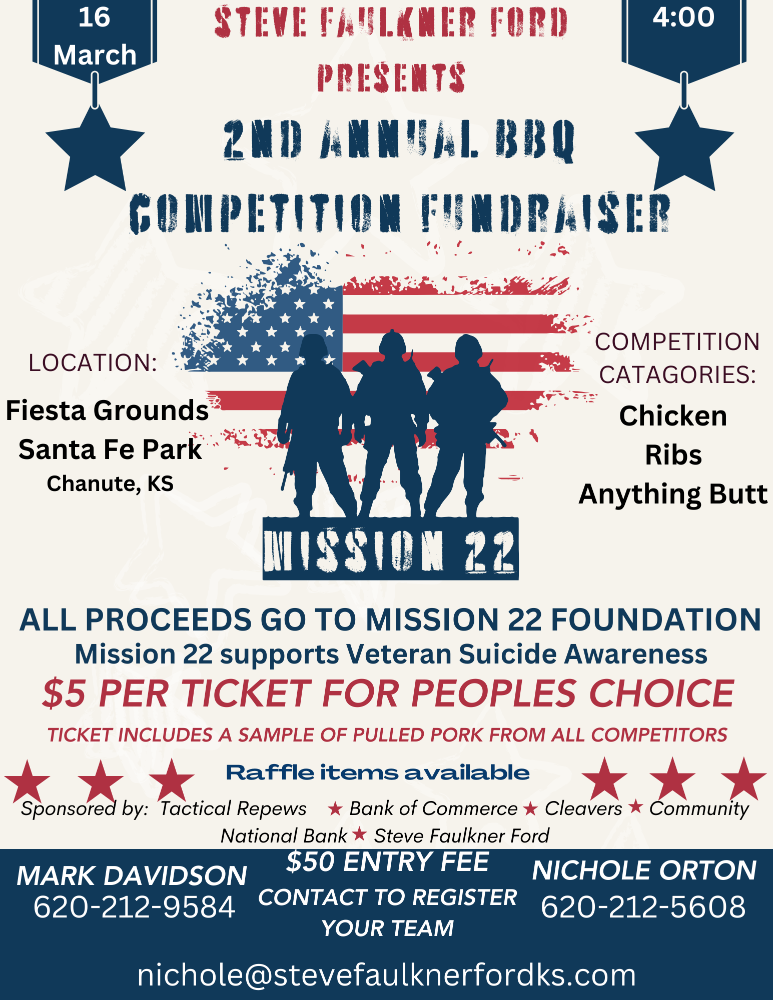 $50.00 entry fee per team- Competition Categories: Chicken, Ribs, Anything Butt