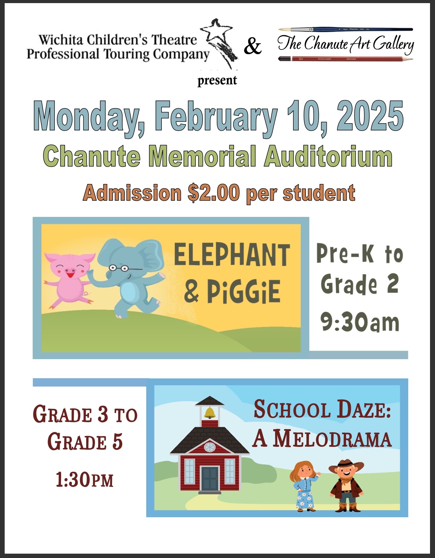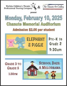 The Chanute Art Gallery & Wichita Children’s Theatre Professional Touring Company Present two shows Monday, Feb. 10