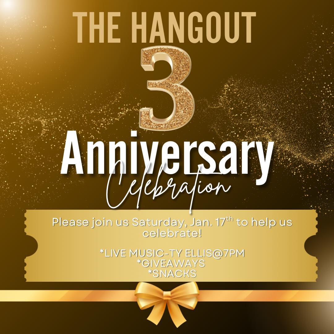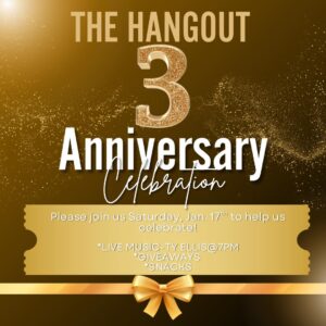 The Hangout will be celebrating 3 amazing years! January 17th; Live music by Ty Ellis at 7PM