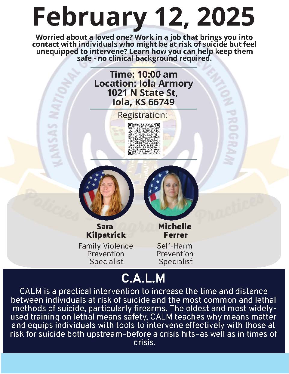 VA Suicide Prevention training in Iola on Feb. 12th; CALM