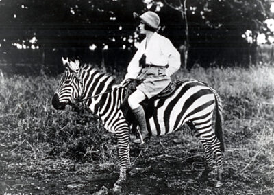 They worked with George Eastman of Eastman Kodak to refine camera and film equipment. Their films and shows offered many Americans their first sights of these faraway lands. Osa’s I Married Adventure was the bestselling non-fiction book of 1940 and is still well-known today with its iconic zebra-striped cover. The Johnsons were the first to use product placement to help fund their safaris and, in 1935, were the first married couple to appear on the Wheaties cereal box. Martin died in a commercial plane crash in 1937. Osa continued their legacy through her writing, public appearances and television’s first wildlife series, Osa Johnson’s The Big Game Hunt. She also had a clothing and jewelry line and authored several children’s books. After her death in 1953, her mother Belle Leighty began work on a museum, which became the Martin and Osa Johnson Safari Museum in Chanute. It opened in 1961.